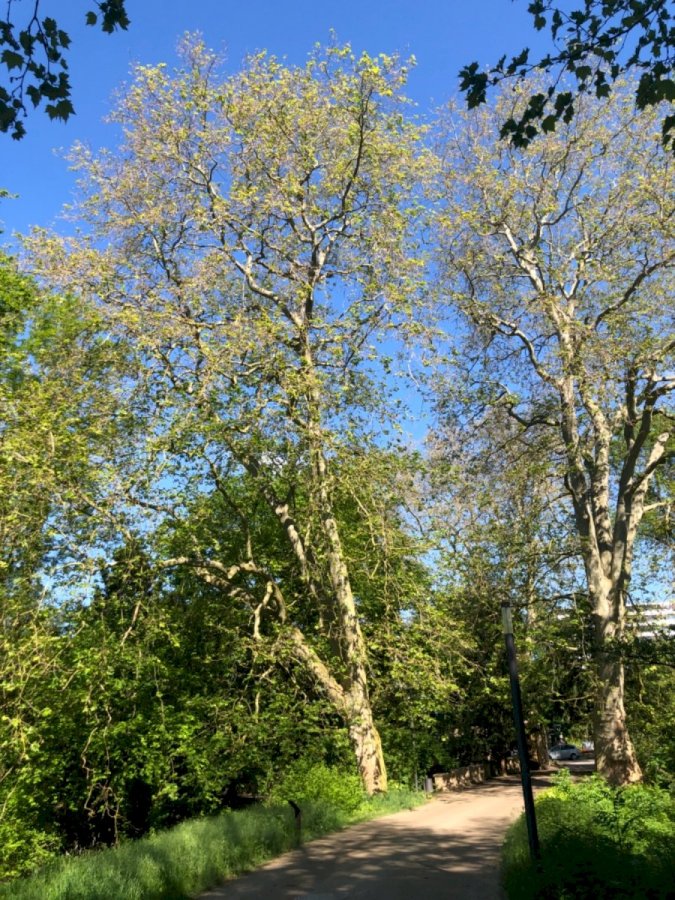 Die Ahornblättrige Platane am dem Weg vom Platanentor zur Schlossinsel zählt zu den ältesten Bäumen im Türnicher Schlosspark und wurde in den 1870er Jahren gepflanzt.
