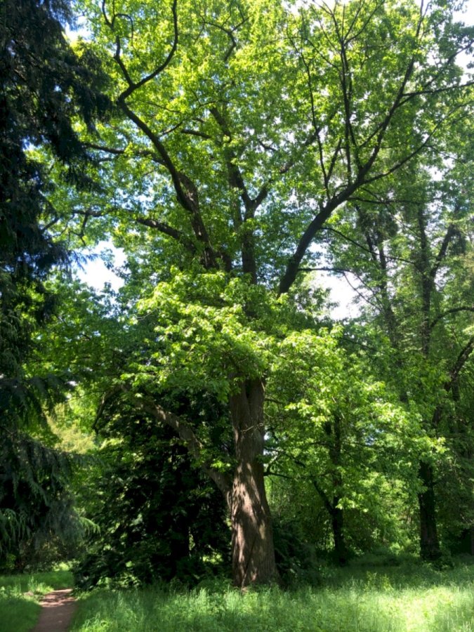 Um die gedrehte Roteiche ranken sich viele mystische Geschichten. Sie zählt neben dem benachbarten Riesen-Mammutbaum aufgrund ihres unnatürlich gedrehten Stamms zu den bedeutsamen Baumpersönlichkeiten auf Schloss Türnich. Leider wurde die Roteiche bei der Flutkatastrophe im Jahr 2021 beschädigt. Der Starkregen hatte den Boden im Park so sehr aufgeweicht, dass ein benachbarter Baum einfach umfiel und einen großen Ast der Roteiche mit sich riss.